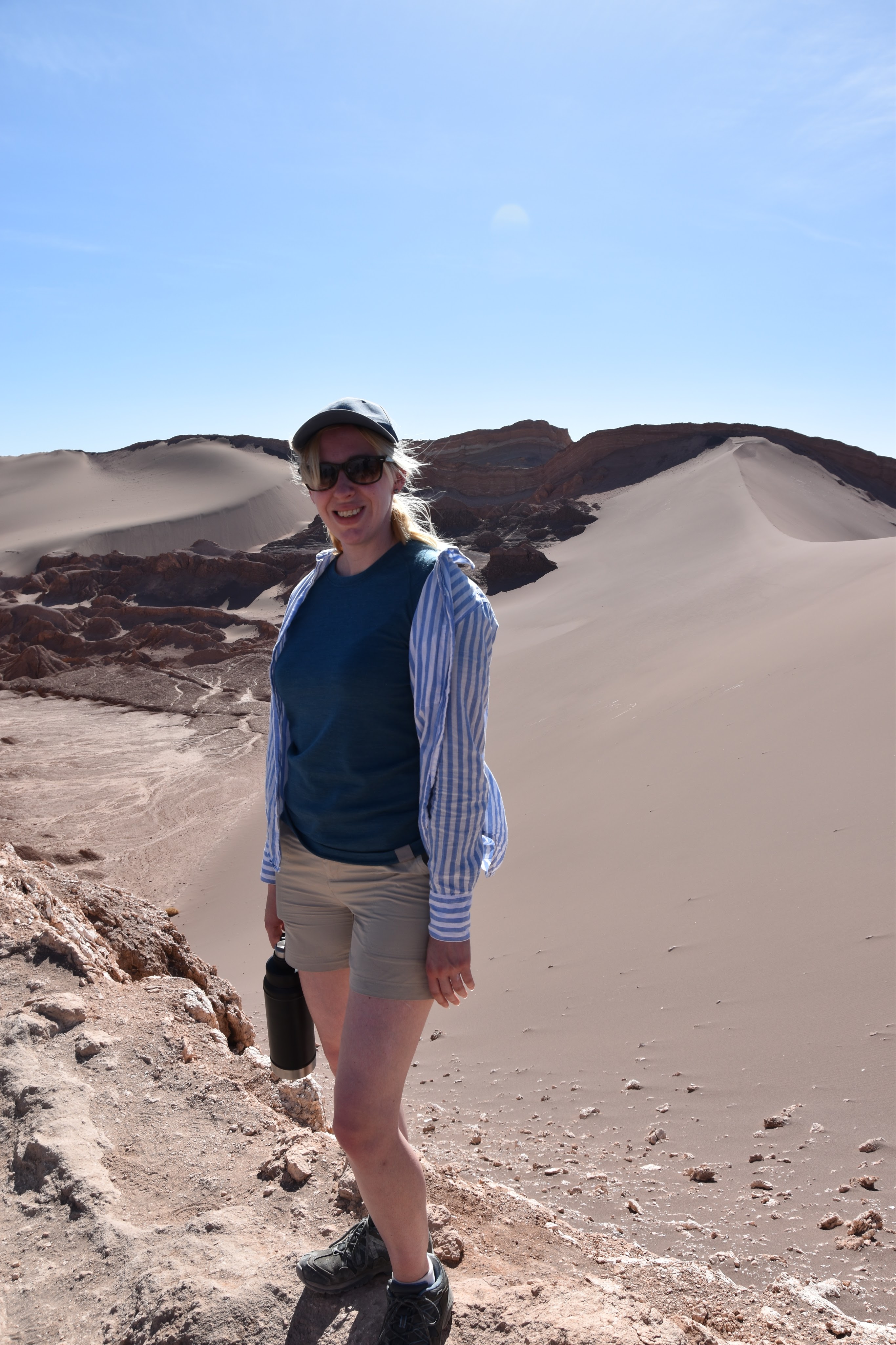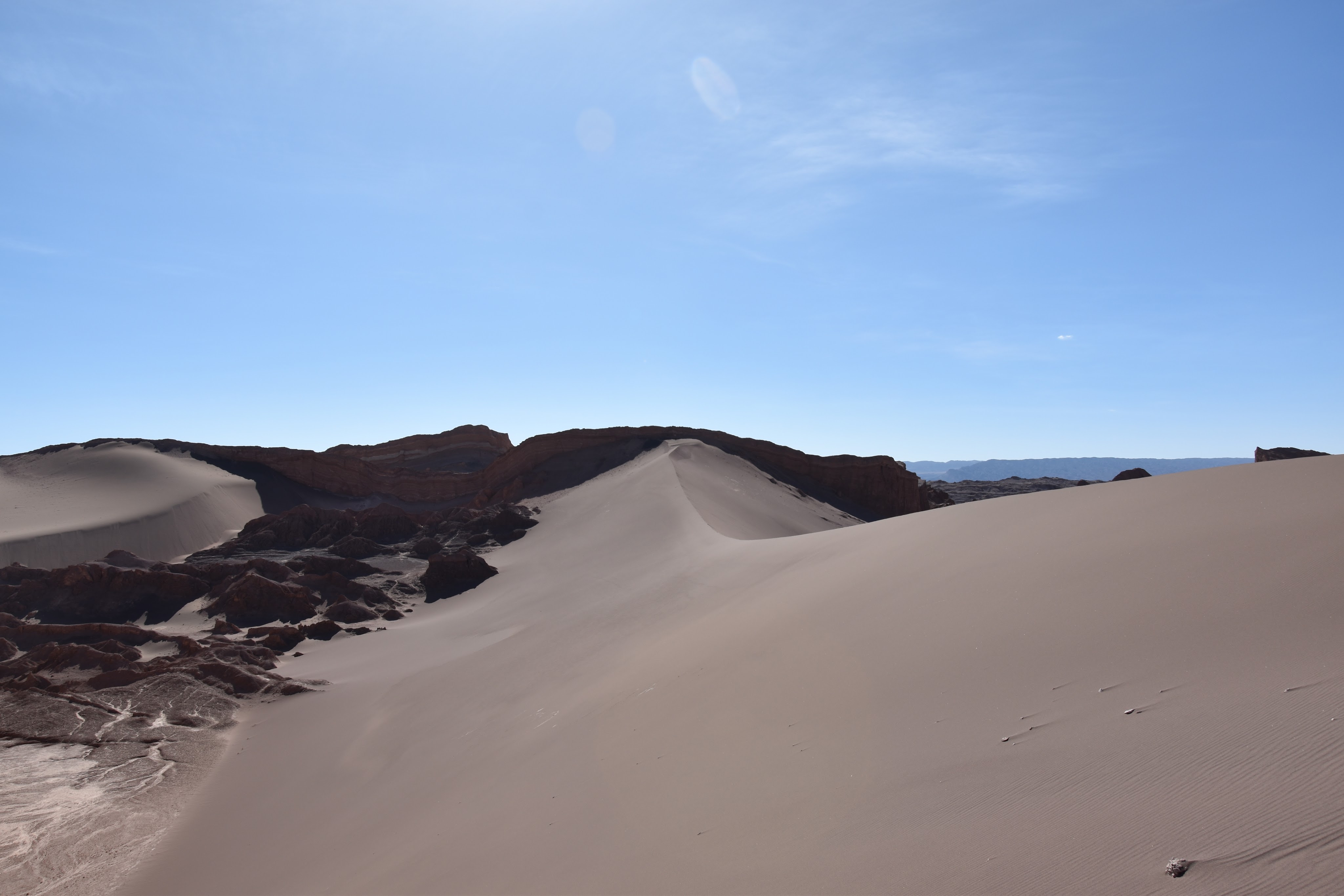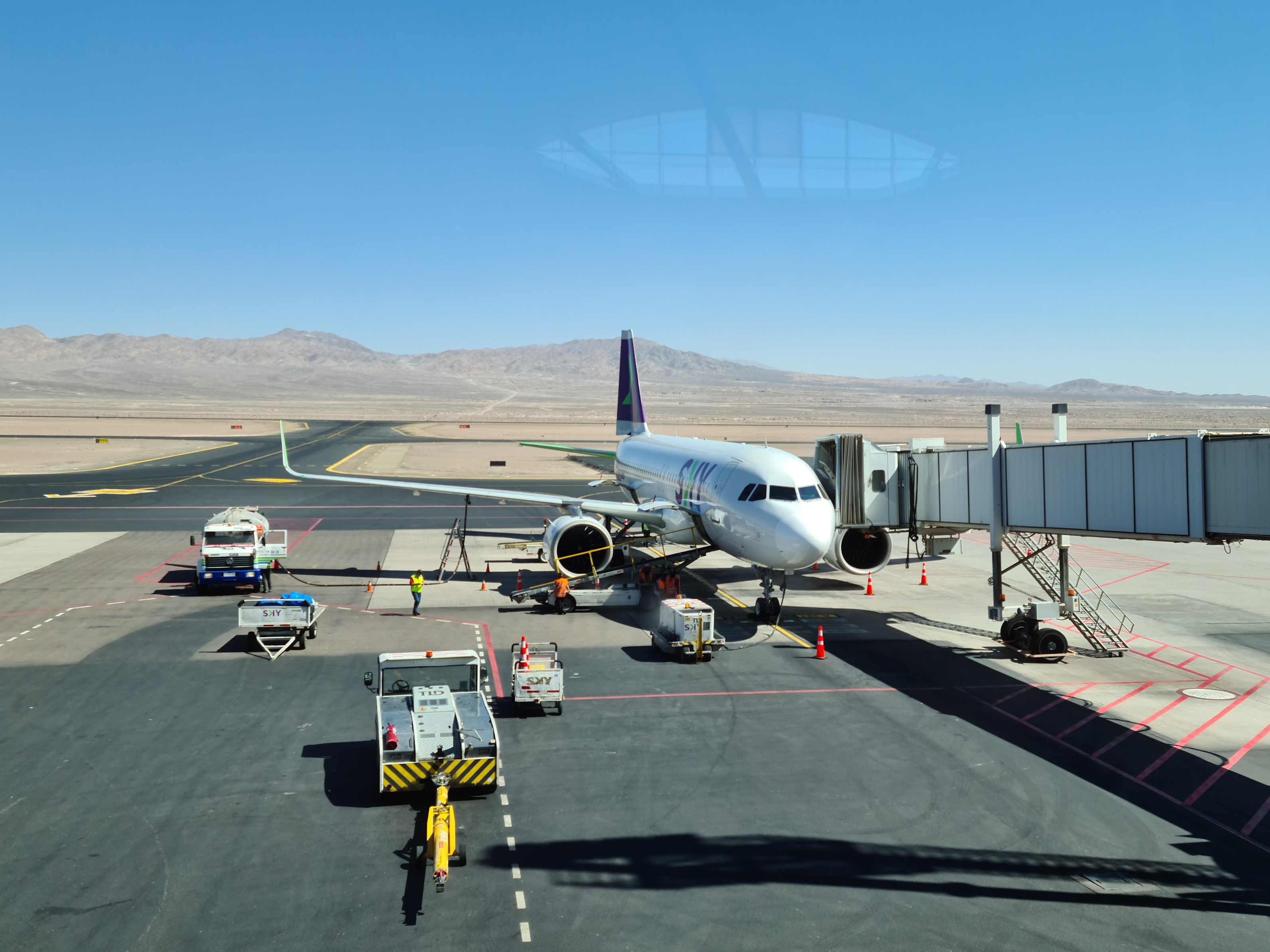 In between my plane writing, I was enjoying glimpses out of the window to take in the incredible (and slightly nerve racking!) views of the Andes. Unfortunately, we didn’t have the window seat and my neighbour had her hand/mobile out in front of her the whole time, so I wasn’t able to get any good pics. The best I can do is this photo from our arrival in Calama, where it was already very clear we had hit the Atacama desert.