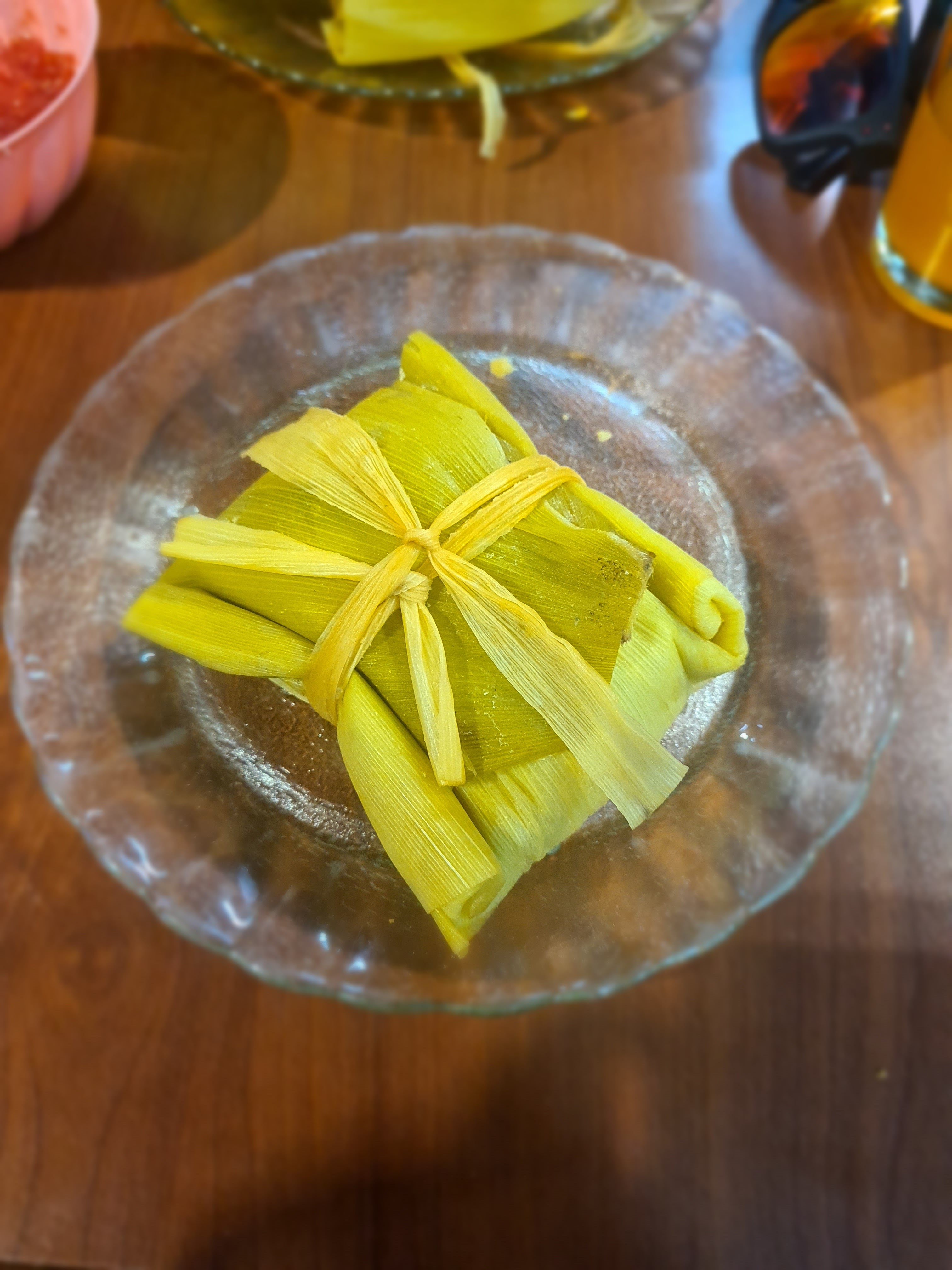 These meat and corn flour parcels are wrapped in chalas (corn husks), and make a good appetizer.