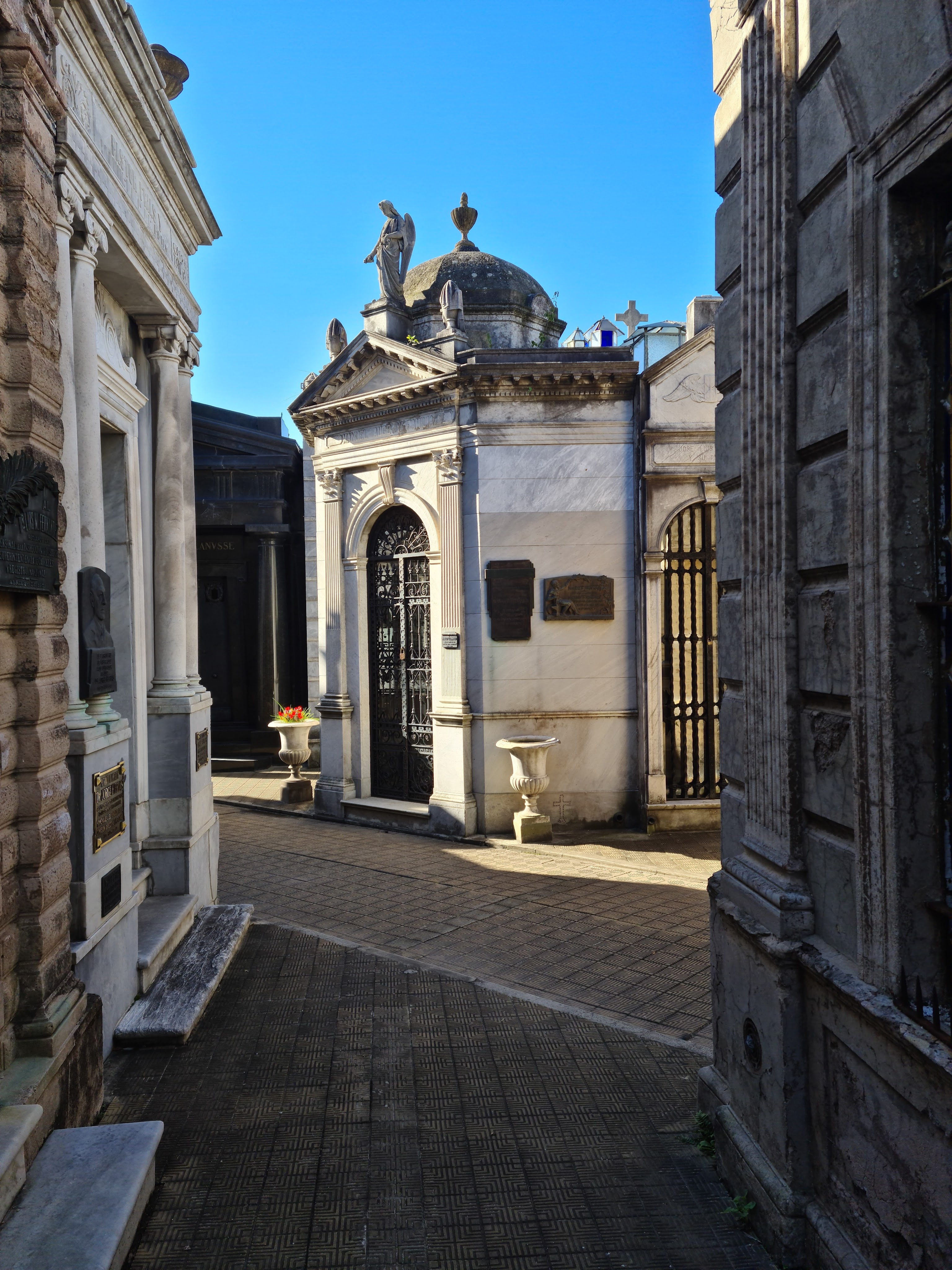 Alright, getting lost would be hard to do on account of the square plot, but also because we had downloaded a mapped guide. This meant we could visit in our own time rather than having to stick to one of the once-daily guided tours. Given the famous residents and historic stories, it is definitely worth having some kind of guide here rather than aimlessly wandering. Tombstones can only give you the bare bones (!) of somebody’s life. Though given the size, and in some cases modernity, of some of the Recoleta tombs, I’m sure they could incorporate a video screen or two if they wanted.