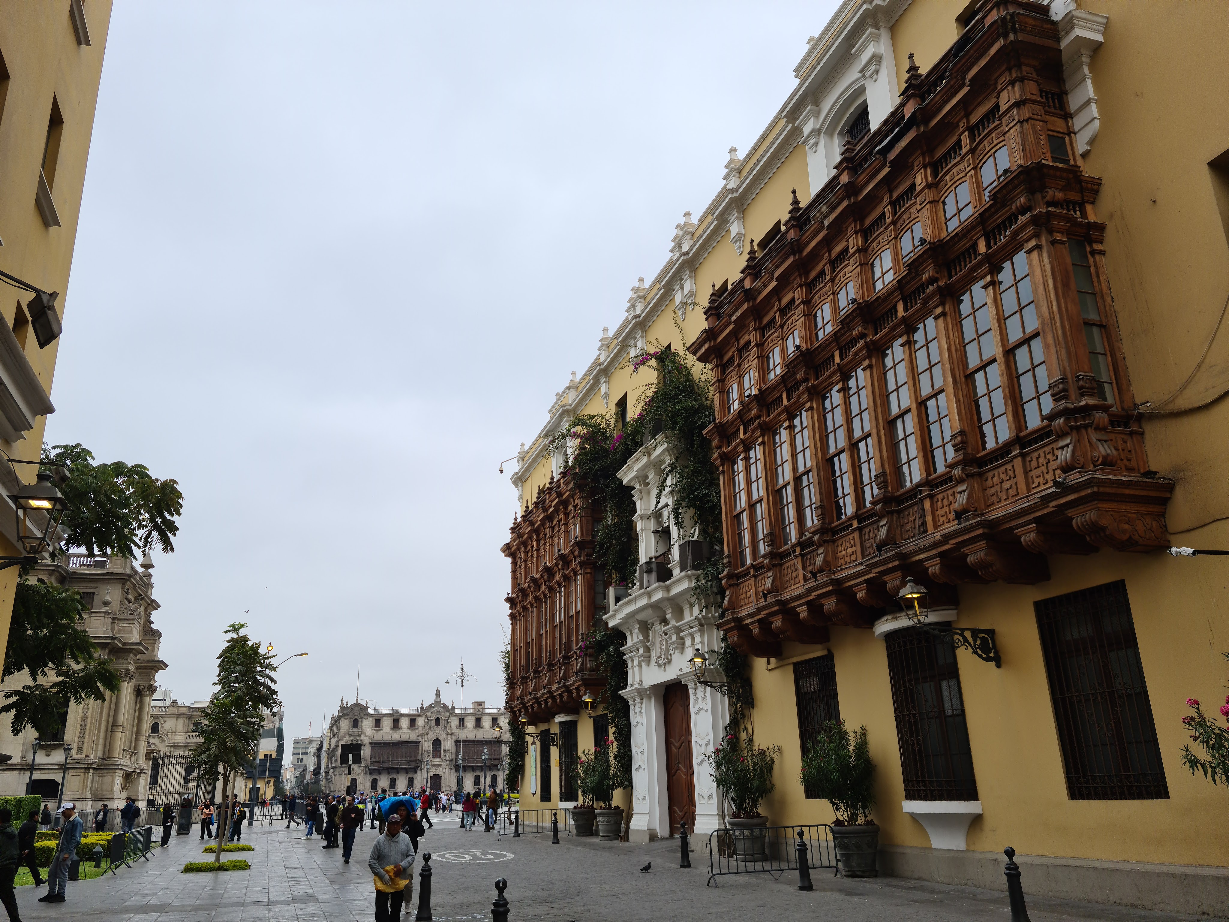 In the middle of the day, we could still move around these edges though and get to see the beautiful cedarwood balconies and building details here and in the rest of the centro historico. Apparently it never rains in Lima, only drizzles, and so the cedarwood doesn’t degrade like it might elsewhere.