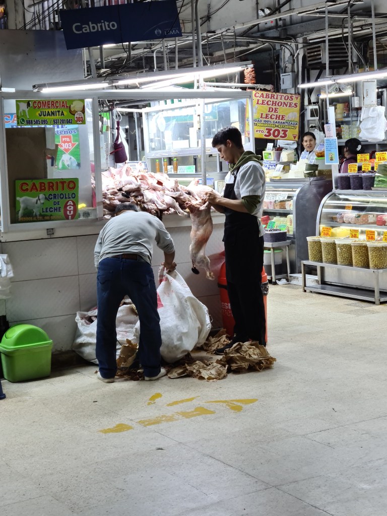 Bonus market pics including purple corn and potatoes. There are 2,000 – 4,000 varieties of potato in Peru (you get a different number from whoever you ask), making it a top foodie country for me indeed! The butchers are handling goat kid.
