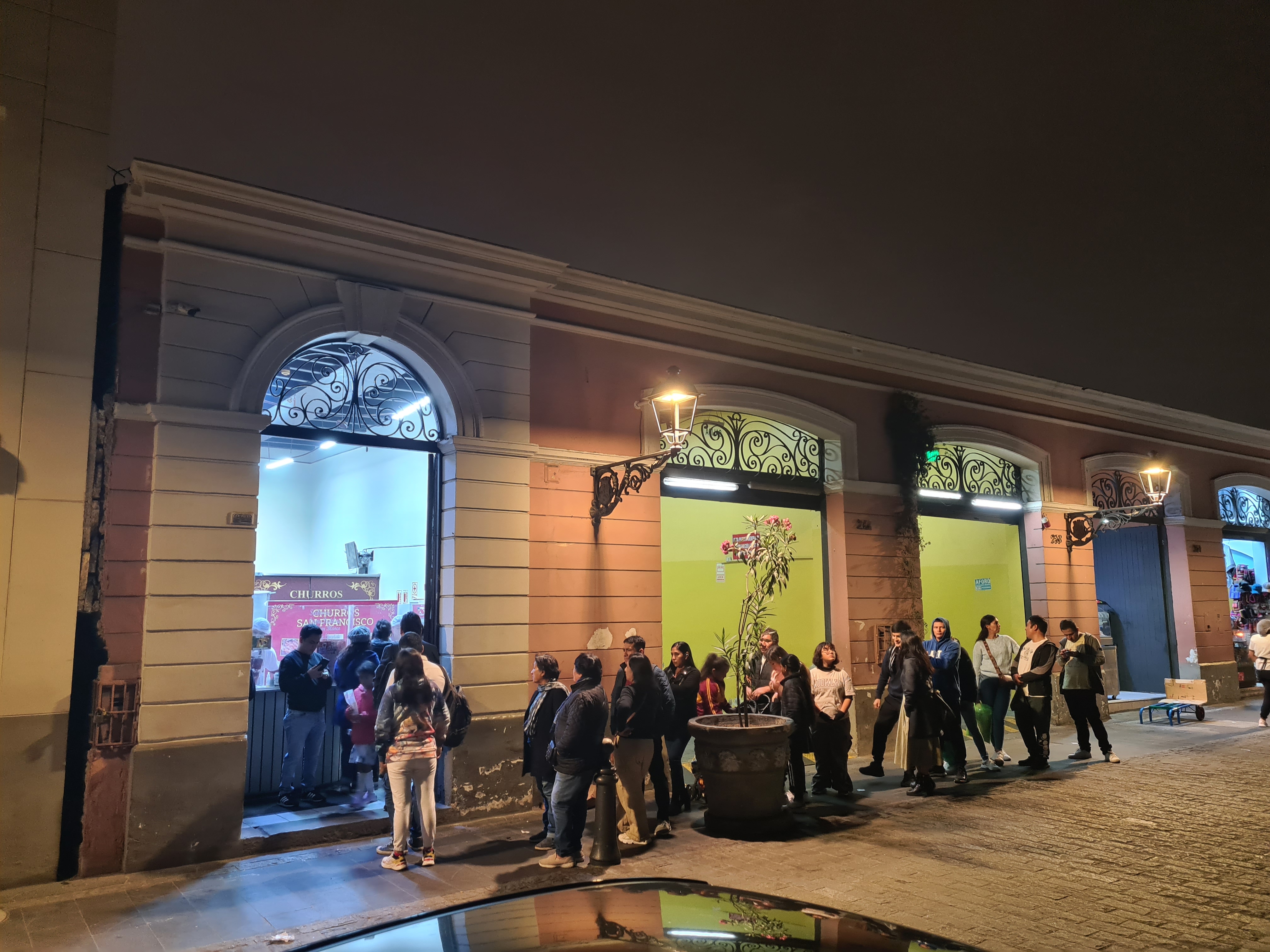 The highlights though were the fruits from the market (including custard apple and the best physalis/cape gooseberry or “aguaymanto” I have ever tasted) and the churros. The latter were purchased at one of several churrerias on the same street, but the only one to have a queue, which led out the door and past the imitations.