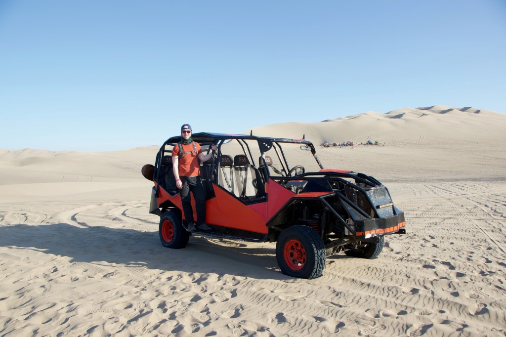 Fast forward to our next destination, Huacachina, 75km to the south east, and it was time to get belted once more into a dune buggy. This was another reason I thought we wouldn’t bother doing it in Paracas. But as the Peru Hop guide explained, it would be very different in Huacachina. This time the professionals would be taking charge of shuttling us in 12-seater buggies up some proper sand dunes.