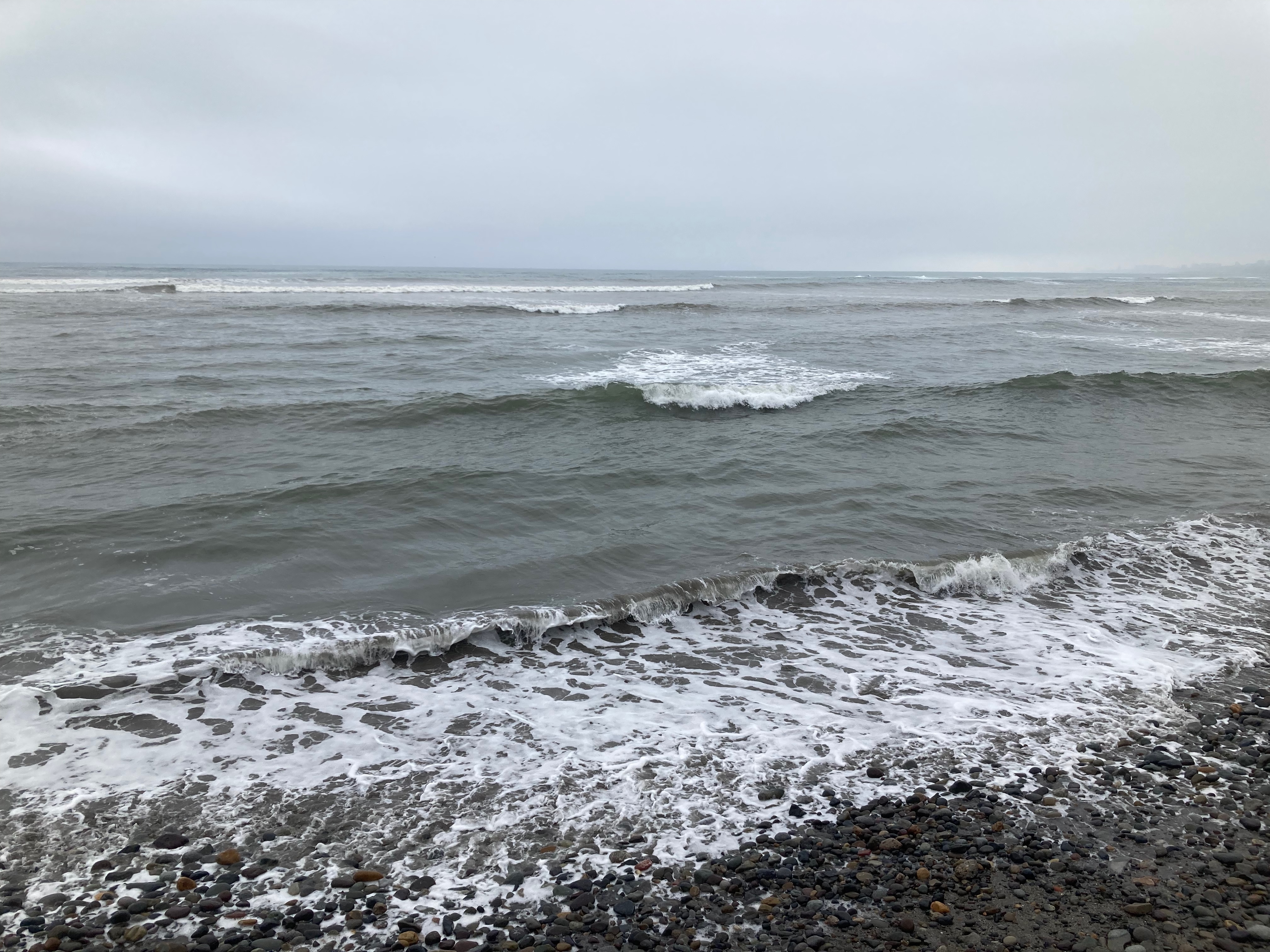 A stone pathway leads from the bridge down to the sea, so we carried on our walk downwards. Alas it was not the weather for a dip (not that it was putting off the surfers) but it was nice to see throngs of locals enjoying a day at the seaside with family. Many were dressed in white, and some looking rather muddy as if they had been in the sea themselves. I can’t find anything online to confirm it, but as it was a Sunday, I wonder if there might have been baptisms at play.