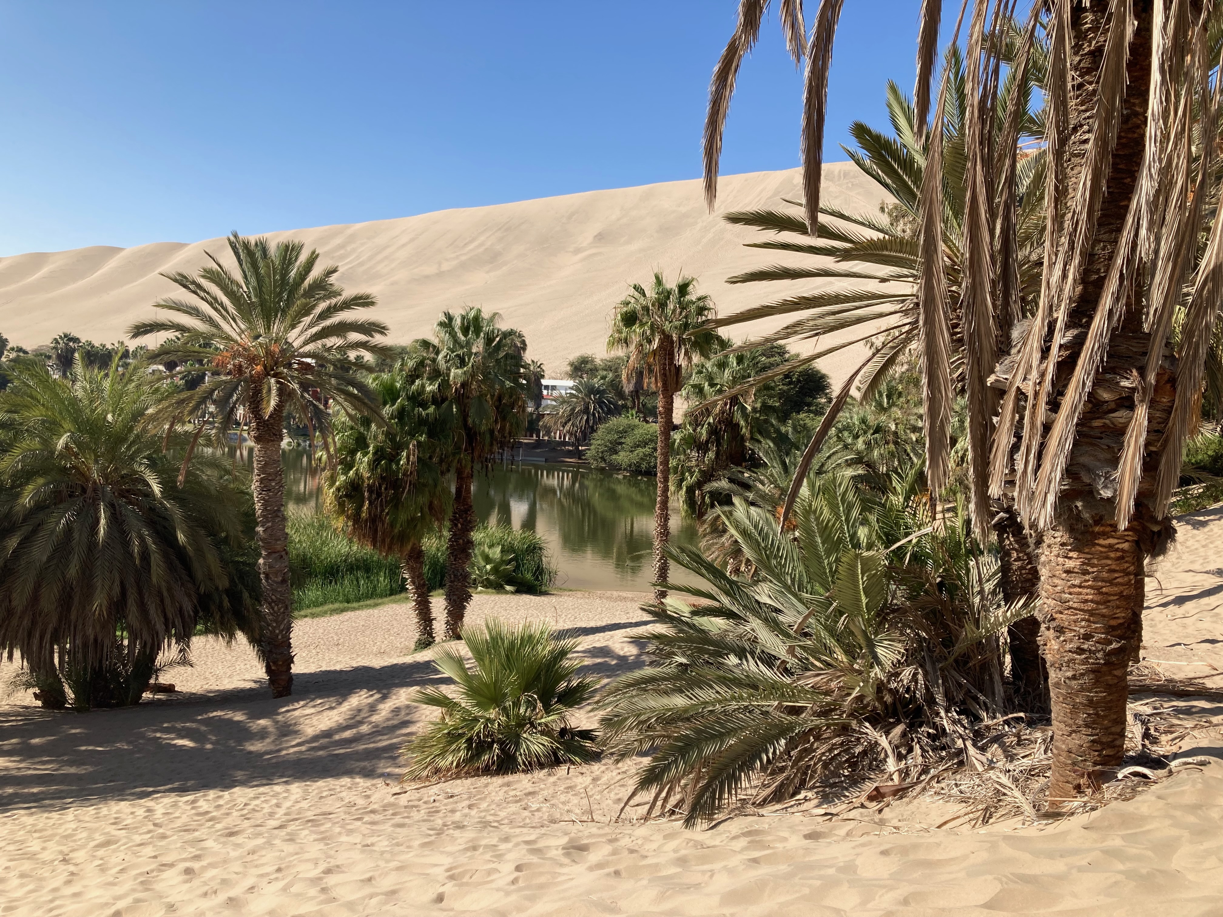 In actual fact, Ricki and I would return to the dunes in the morning, but sadly only on foot. We were keen to climb the dunes immediately surrounding Huacachina this time so we could get the full perspective. Huacachina is a literal oasis in the desert, and how many of those do you get to see?