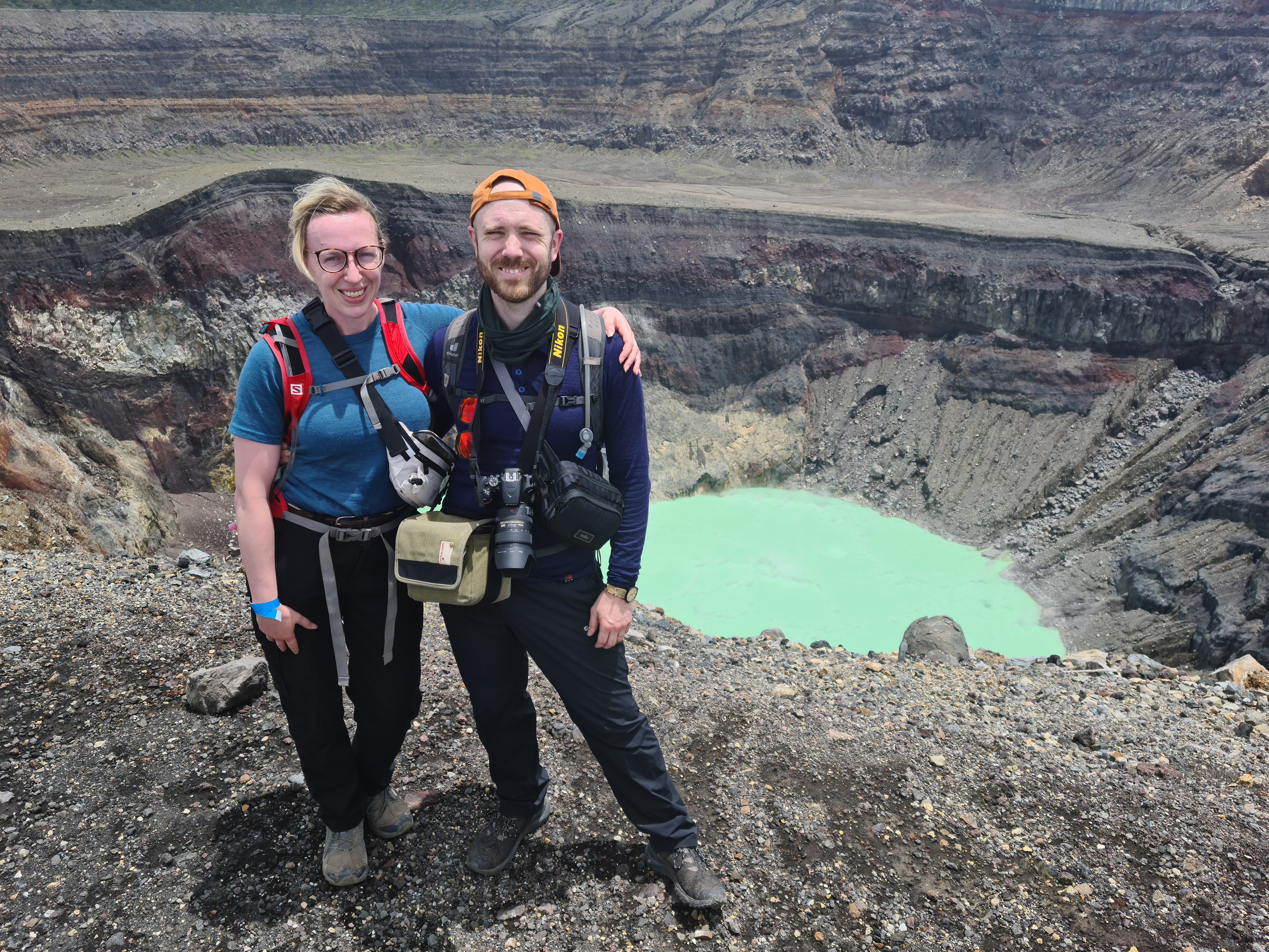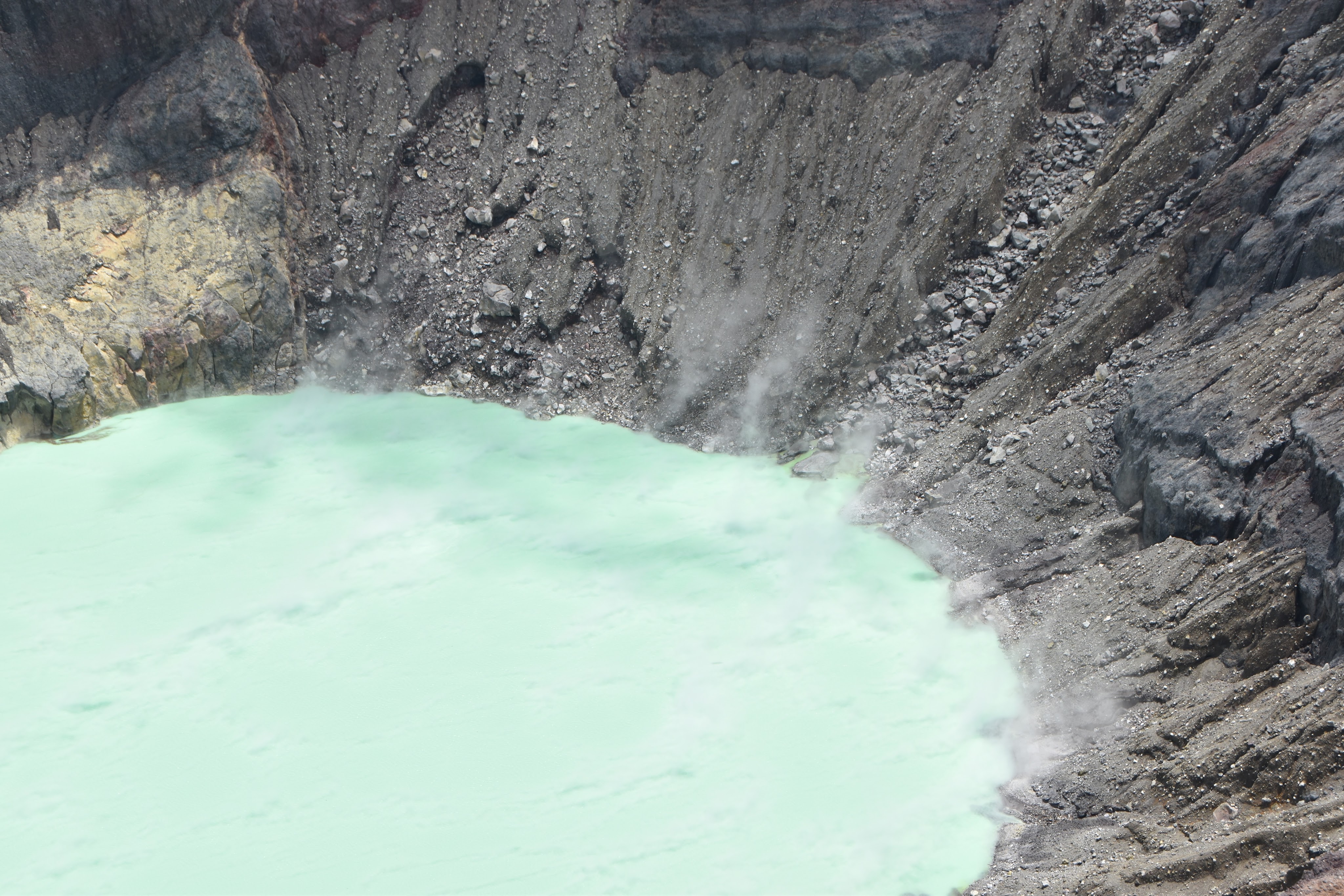 The half hour was more than enough time to admire something we didn’t get to see at Acatenango or Fuego – the crater. Here a sulphur crater lake was pretty mesmerising with its turquoise blue colouring and steam hovering across the surface. We were definitely taking care not to drop anything down the sloping sides.