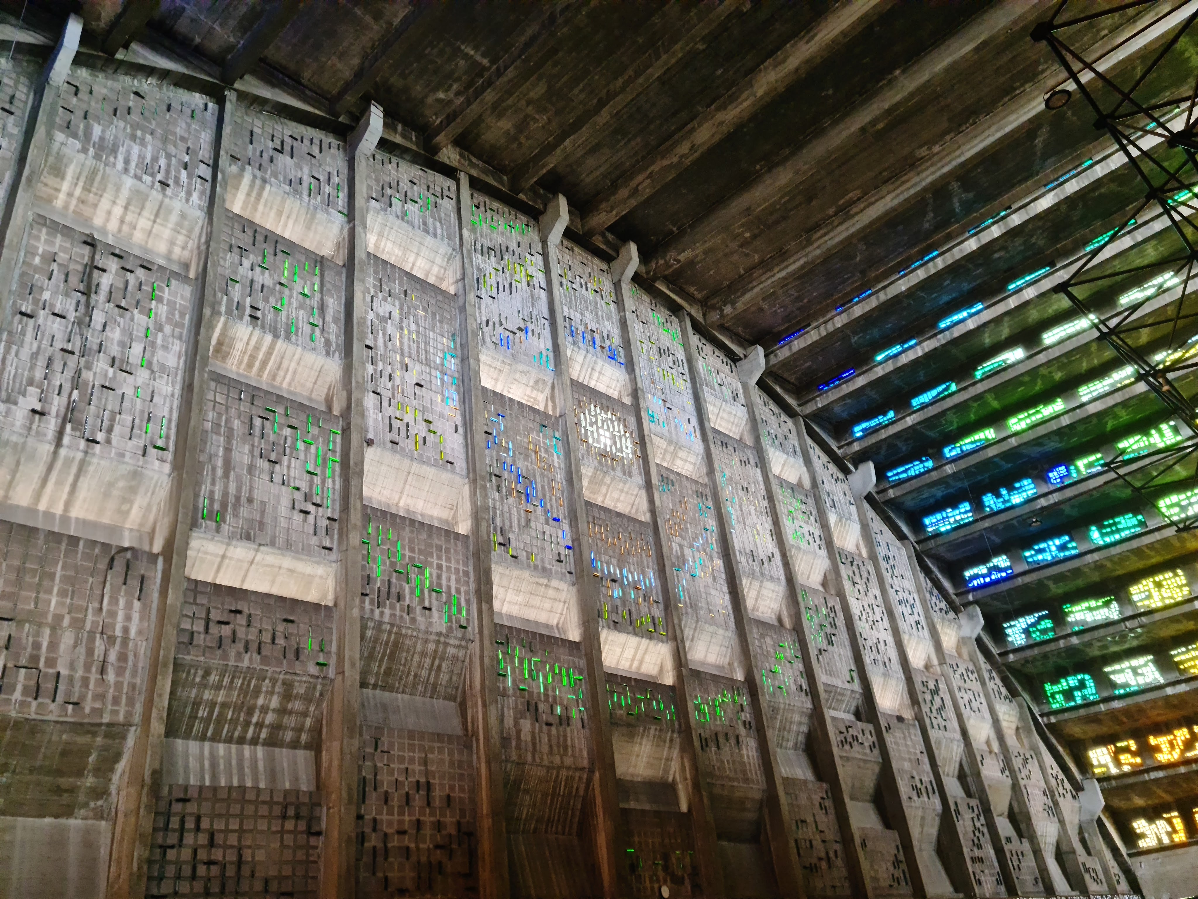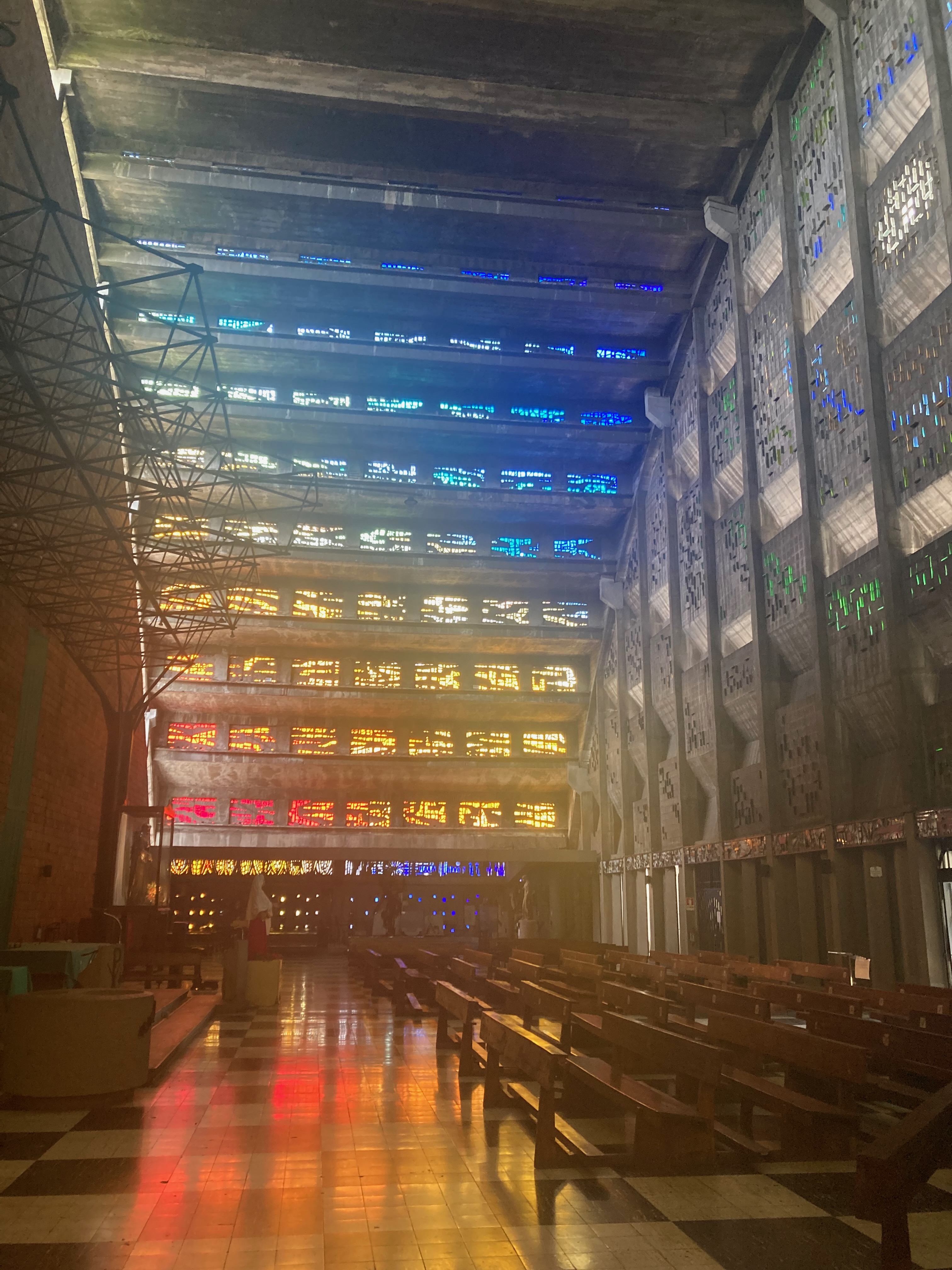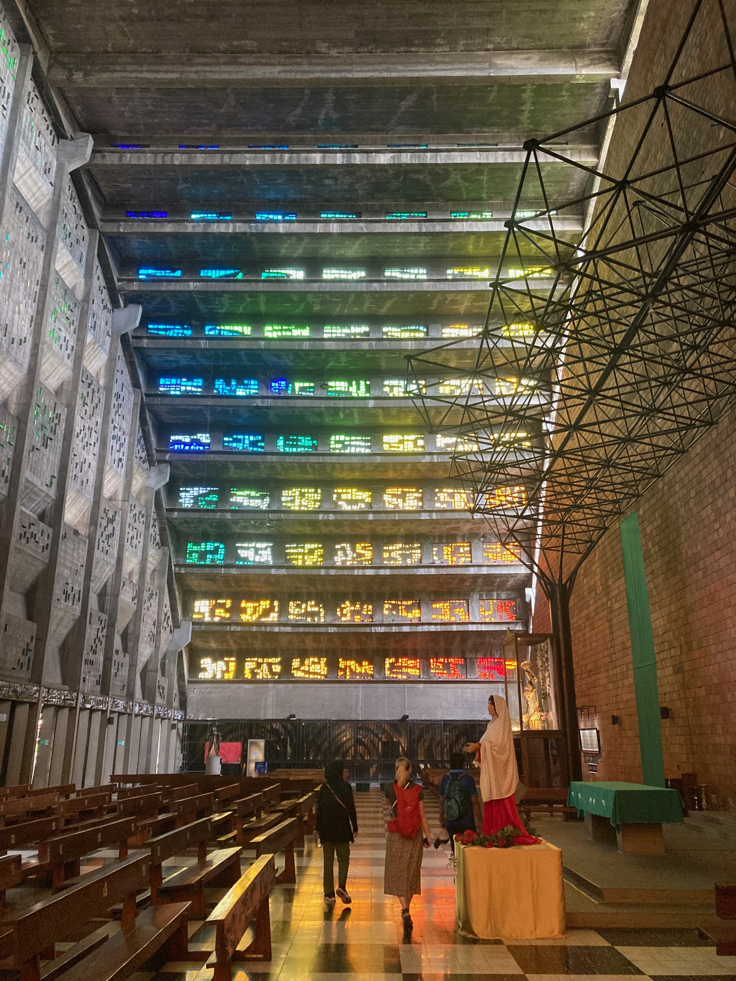 Inside though, the windows let in the most incredible rainbow light. In the ultimate story of “I want to talk to a manager”, the local clergy didn’t approve of architect Rubén Martínez’s plans when first presented, so he approached the Vatican for sign off instead.