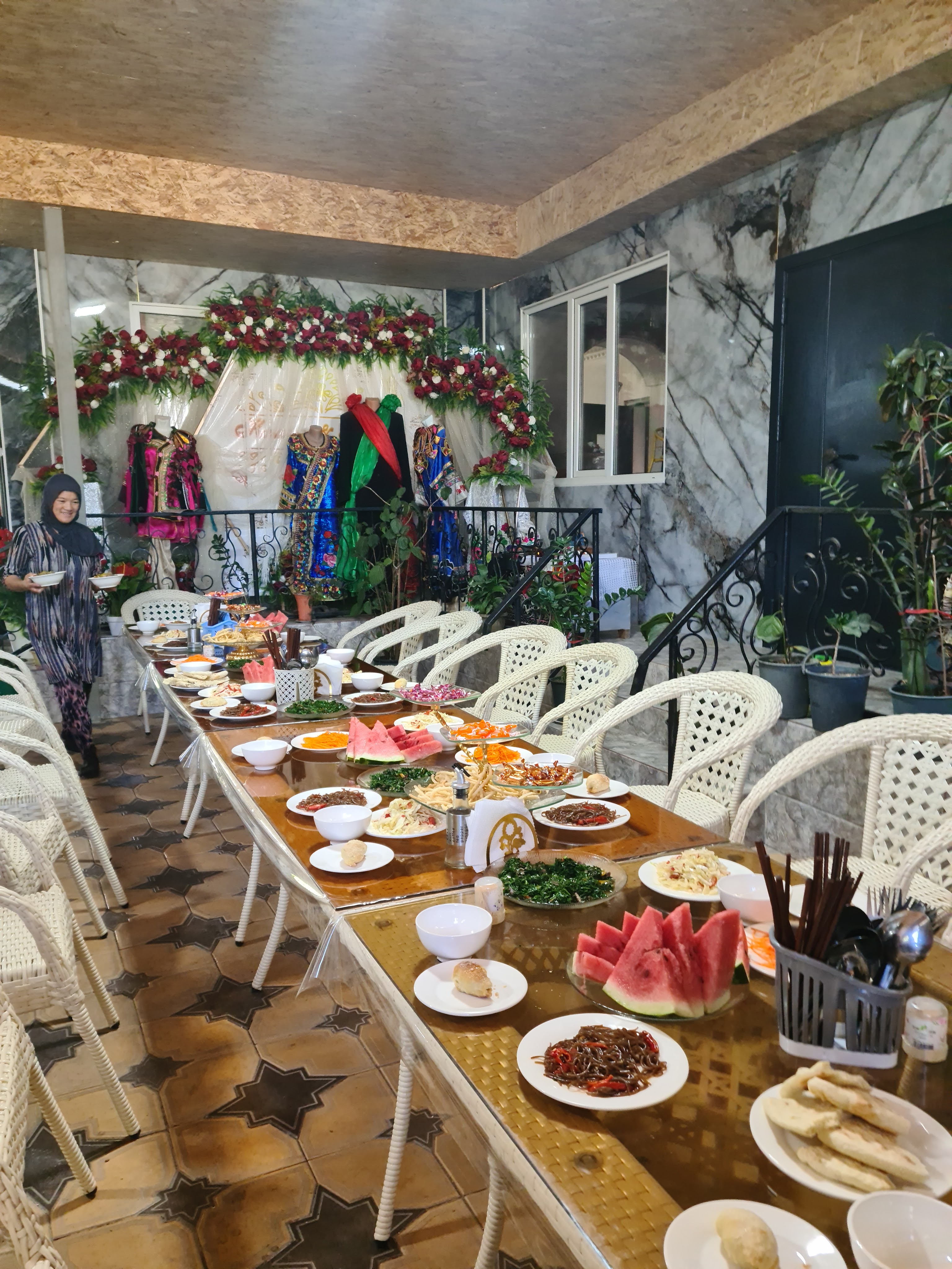 There were Chinese noodle soups, Russian stroganoff and Uyghur Muslim stews and breads. Accompaniments like boursaki (fried dough) or snacking foods like samsa (just as the name sounds, like samosas). Even the appearance of these meals was a feast for the eyes, as our hosts often went to town setting the table. Usually it would be finished off with melon and a variety of Kyrgyz and Kazakh pick and mix, to this sweet-tooth’s delight.