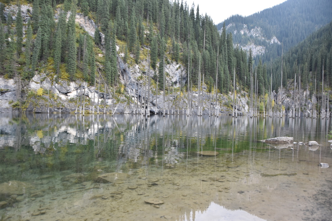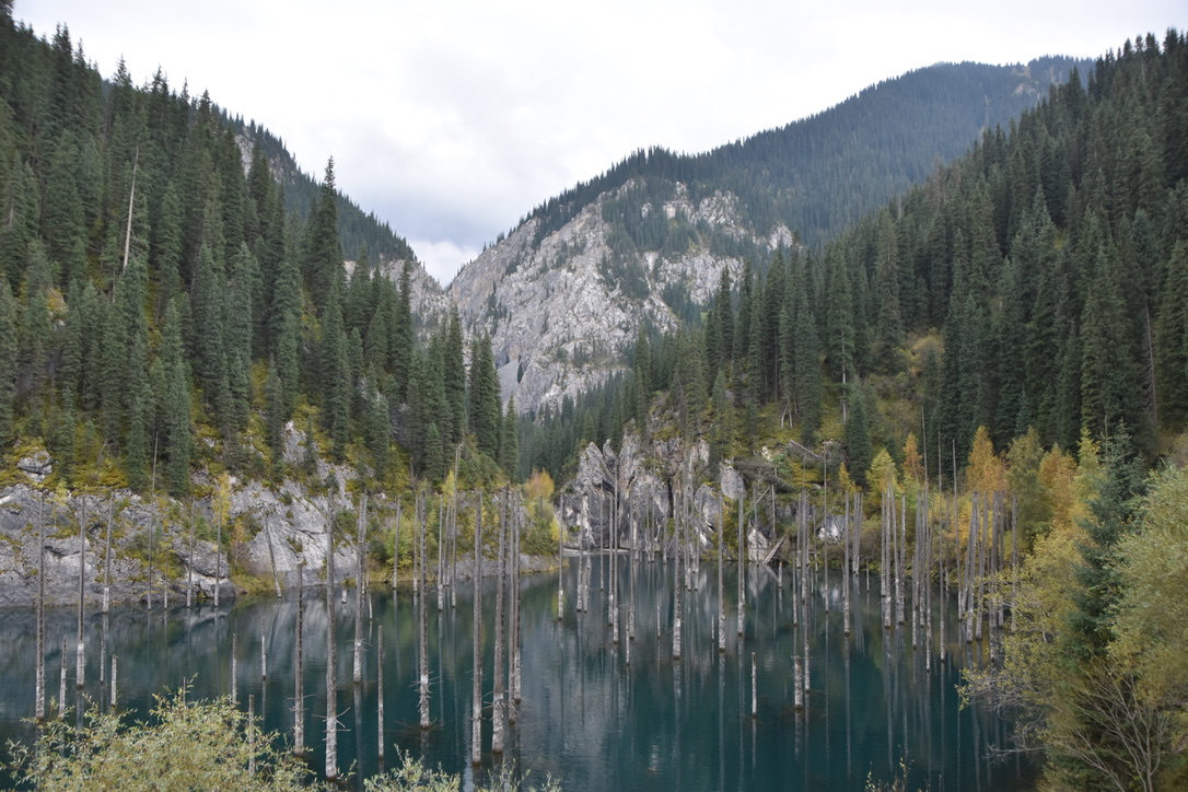 Arriving in the village of Saty, we swapped the minibus for 4x4s, then a Soviet era “loaf” bus (or “paper tank” as Ivan dubbed it) and headed up a hill for Lake Kaindy. I’m not sure what was more bone-jolting, the off roading or the old tank.