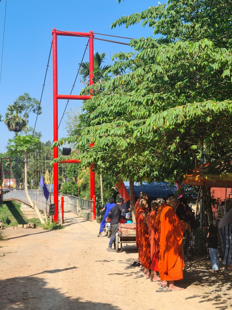 Most special of all perhaps was pausing outside a riverside temple, just as the monks were returning from collecting alms. This is the ceremonial process where the monks receive food donations from local businesses and villagers, taking their last meal of the day at lunchtime before fasting.