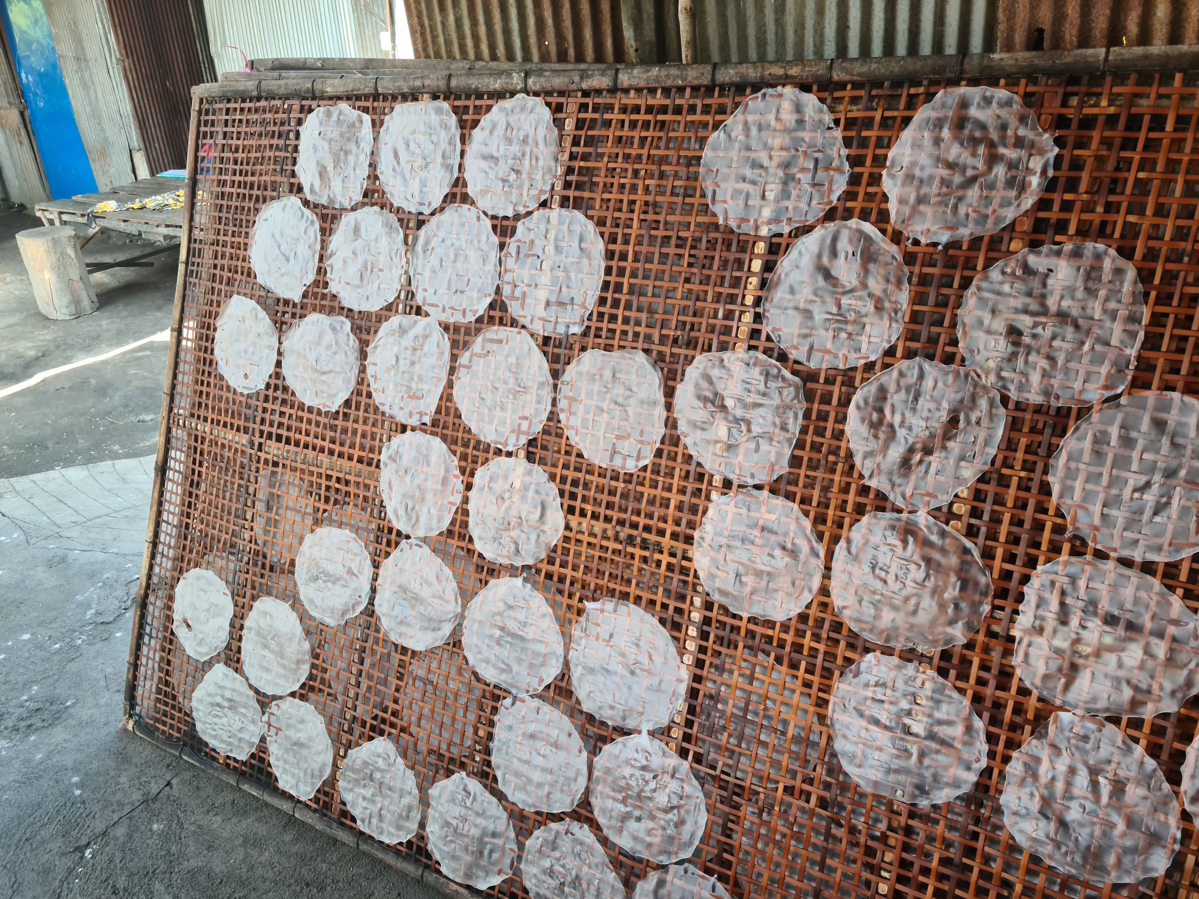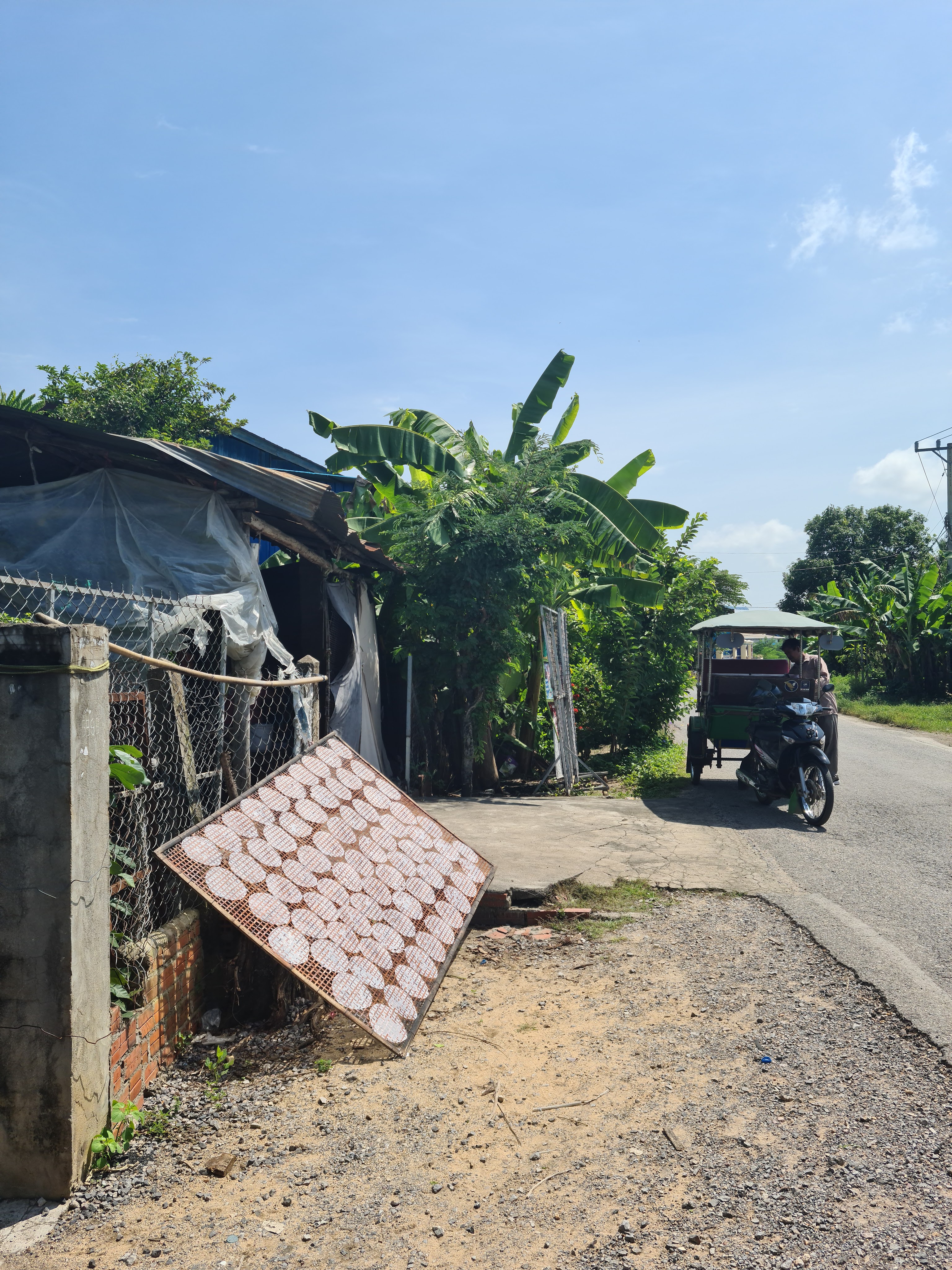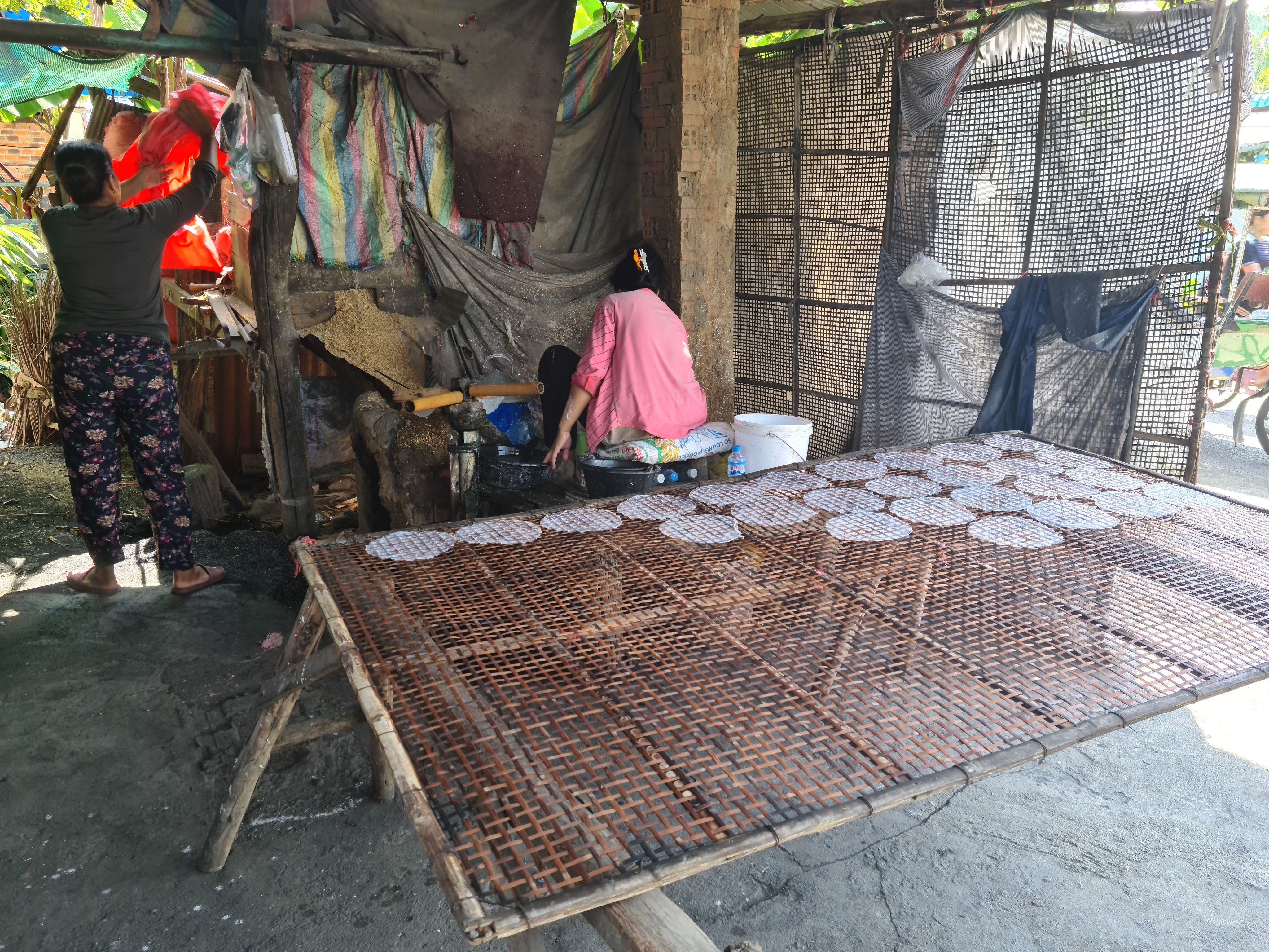 Our touring through the countryside around Battambang also let us see the local food production. Here we have the rice crackers being made: