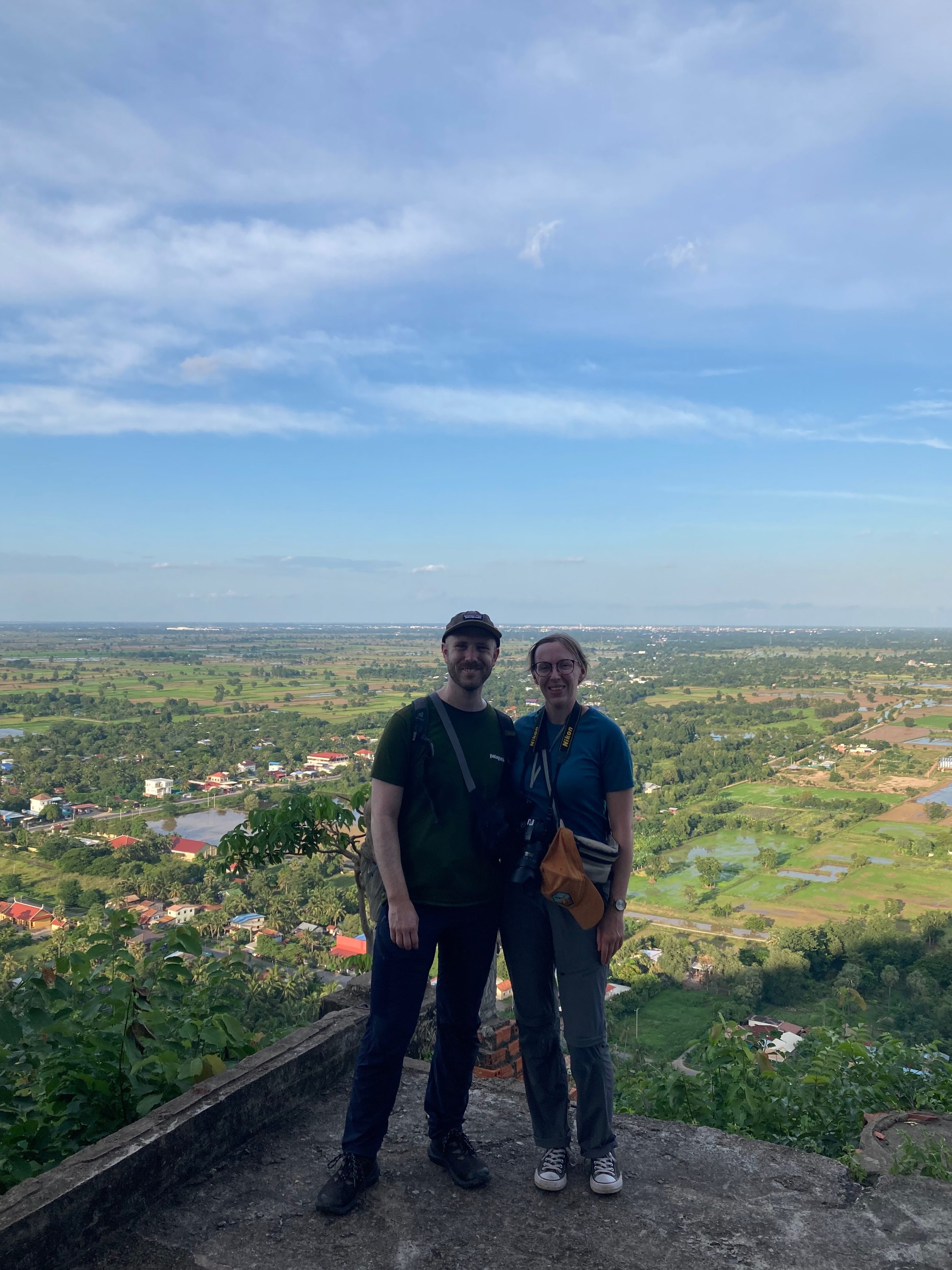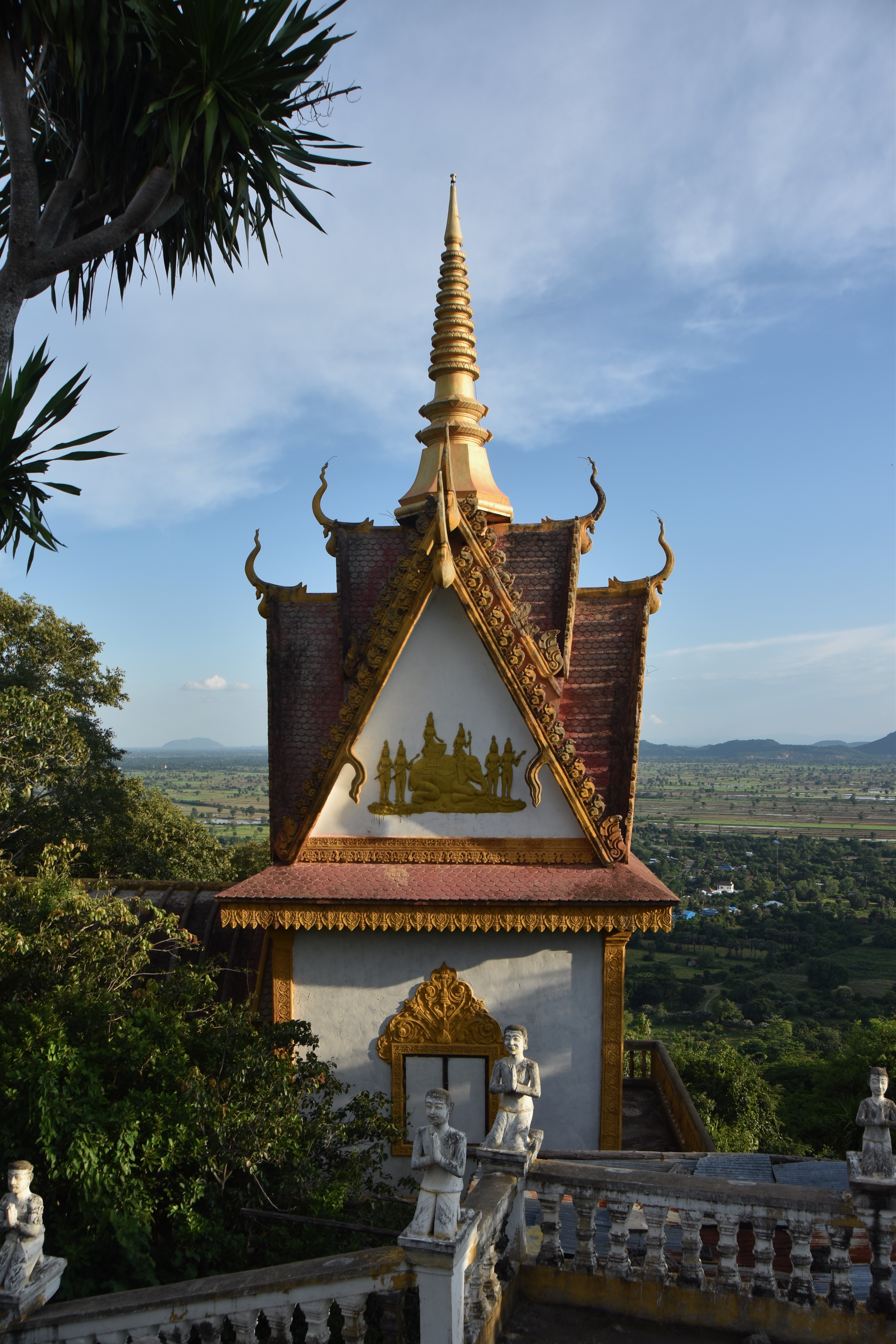 Wasting no time on our arrival into the town, we had also got sorted with an evening tuk-tuk trip to Phnom Sampeau. We inhaled the country air with wafts of jasmine and gazed across rice paddies from the temple-topped hill. It’s so strange to see the contrast of miles of flat earth, interrupted occasionally by dramatic limestone peaks such as the one on which we stood.