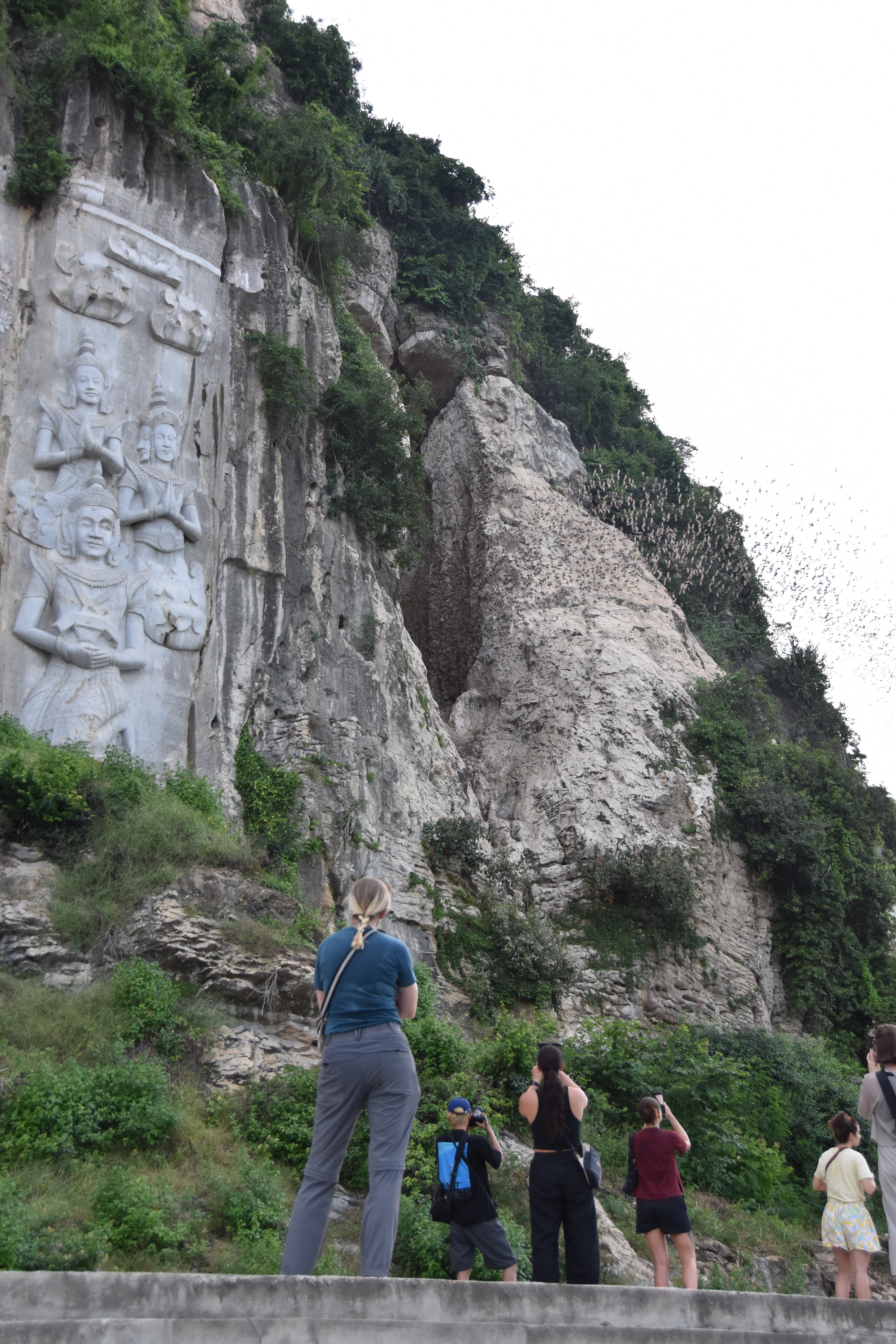 There is, however, another famed cave at Phnom Sampeau which in recent years has lured an increasing number of visitors to the cliff. Appropriately for the day we visited, Halloween (yes, my writings are approaching a pathetic 3 months behind events), we were about to put the “Bat” in “Battambang”. At dusk, it is estimated 5 – 6 million of the flying mammals make their way out of the caves en masse.