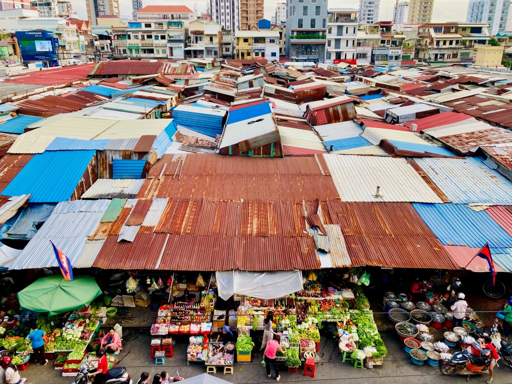 We decompressed in a casual rooftop bar, taking in the outlook over the busy central market. It had become clear that supermarkets here exist only for foreigners. Locals buy all their goods in a trip to the old-school market, grabbing the likes of spices, new shoes, home decor and tuk tuk tyres all in one place. I particularly enjoyed our view over the meat and fish section, as a no-nonsense vendor prepared fish so fresh, it needed a perfunctory “whack” to render it motionless, before she filleted so efficiently I’m sure she would fly through any Masterchef skills test.